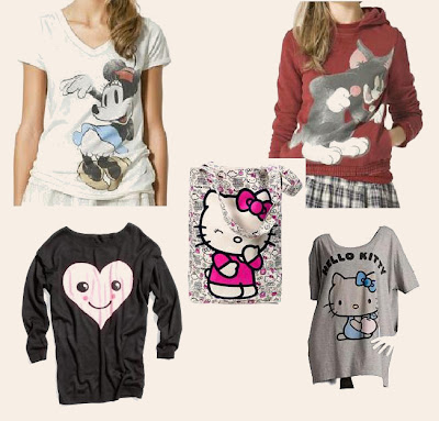 Finalmente, por suerte para nosotras y nuestras economías, las marcas de moda más populares en nuestro país también han adoptado esta moda. Así, esta temporada podemos encontrar a los personajes de dibujos animados Tom & Jerry y Mickey & Minnie Mouse en TRF de Zara, a Hello Kitty y Minnie Mouse reinando en Oysho y estupendos complementos de Kitty también en Zara Kids. En H&M, también hay algunos diseños con dibujos infantiles diversos en prendas de moda joven.