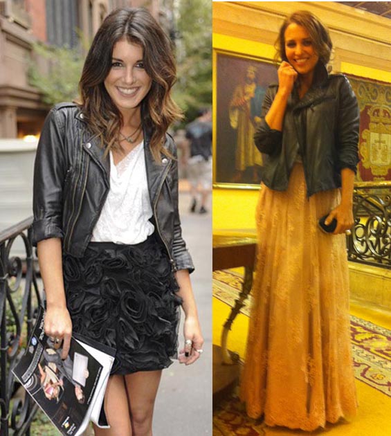 Será una prenda que nos ayudará a componer montones de looks, como estos que nos enseñan Shenae Grimes en versión casual y Paula Echevarría en versión «festiva y boderil» acompañando a un vestido largo y de encaje. No es una propuesta novedosa pero si poco vista a pie de calle (o a pie de ceremonia) y el contraste sienta fenomenal!!
