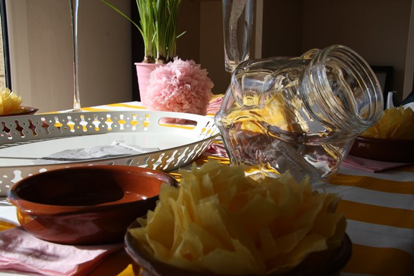 Hacía tiempo que me apetecía utilizar las flores hechas con servilletas de Martha Stewart una manualidad sencilla para realizar con niños, entretenida y muy vistosa… Solamente faltaba elegir la gama de color y finalmente la inspiración vino de la mano de la combinación rosa y amarillo.