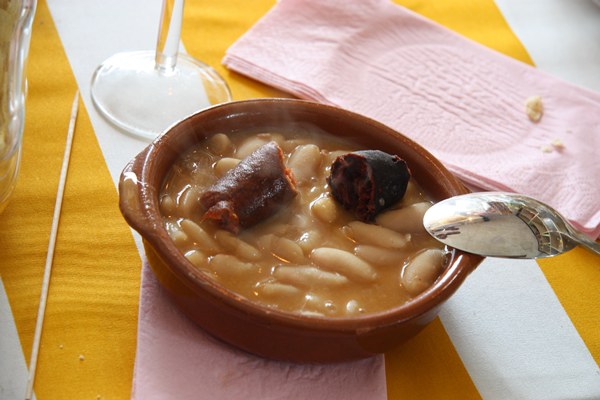 Y para que los invitados no supieran el menú completo desde el principio colocamos flores de papel tambien dentro de las cazuelitas de barro donde luego se serviría nuestra típica fabada asturiana un plato que cumplía con los requisitos pedidos: consistente y no demasiado laboriosa de hacer.