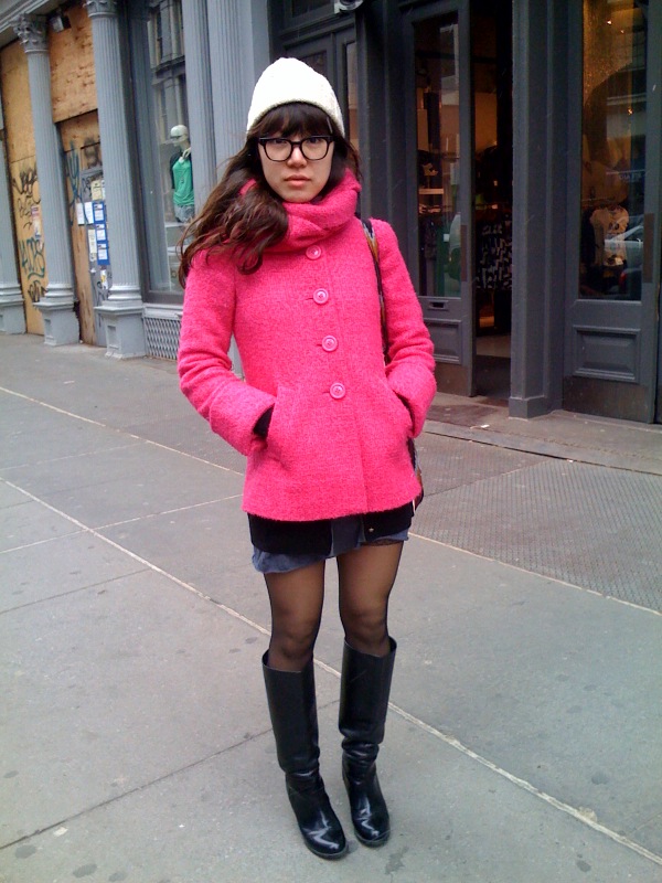 Nada más desayunar un par de bagels en la esquina de la 44 con la Séptima Avenida me encontré con Taori, una estudiante de la prestigiosa Escuela de Diseño Parsons de apenas de 21 años. Me encantó el contraste entre su coqueto abrigo fucsia y las gafas de estilo nerd que llevaba, una forma muy original de llevar los tonos flúor que van a arrasar esta primavera, ¿no creéis?