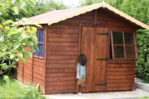 Aparte del look, pensado para disimular la barriguilla y los kilos de mas que evidentemente despues de veintisiete días aún me acompañan, me apetece enseñaros mi ultimo DIY: la cabaña que veis a mi espalda, distribuida por Green House y preparada para montarla uno mismo facilmente (siguiendo los pasos, es como montar un tente). Es absolutamente recomendable para todas aquellas que necesiteis un espacio de almacenaje extra en el jardín, patio, terraza etc… Disponen de un montón de modelos entre los que poder elegir (no os perdais los modelos para niños de los que espero poder hablaros mas adelante) Por cierto, podeís ver como la hicimos pinchando Aquí