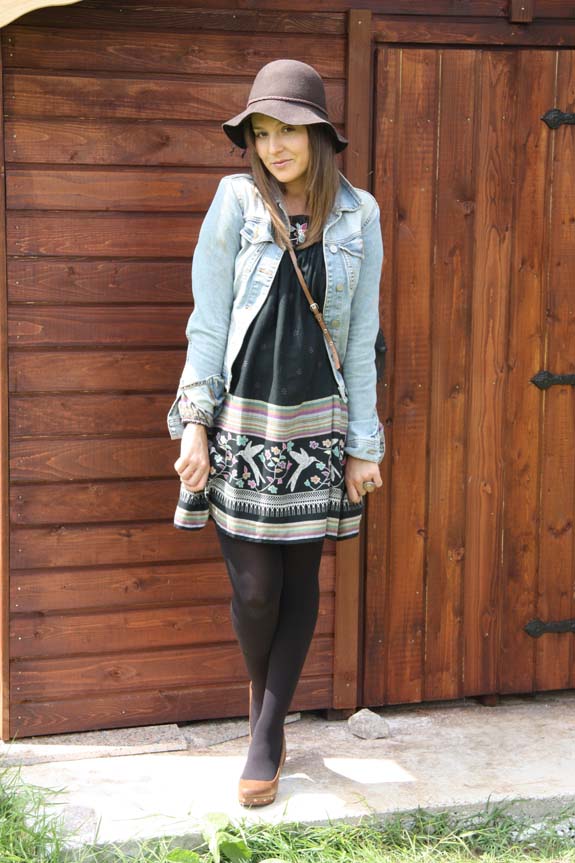 Vestido Zara (A/W09) Zuecos Stradivarius (A/W10) Cazadora Massimo Dutti (S/S09) Bolso Bimba y Lola (S/S10) Sombrero Hazel (A/W10) Cabaña Green House