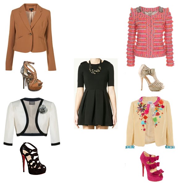 Hola, en mi opinión, si puede cambiar el vestido negro por el camel , lo haría sin pensar y llevaría el look azul. En caso de que el negro sea imperativo prefiero el look de chaqueta fucsia y sandalias plata. La verdad es que me han encantado casi todas las opciones , aunque la combinación del vestido negro con la chaqueta bicolor blanca y negra me parece demasiado seria.