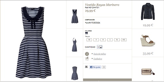 Otro apunte, en alguna tienda online (que ahora no recuerdo cual es) te dicen la talla que lleva la modelo, a mi me parece buena idea porque si la modelo lleva una 40 y me dan ganas de darle un bocadillo, ya se que con una 42 (mi talla habitual) no tengo ni para un brazo!
