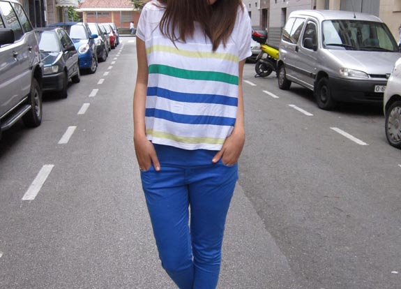 Pantalones Zara, Camiseta Stradivarius, Rebeca Mango, Zapatos Estefania marco , bandolera Mamá pata y sus patitos