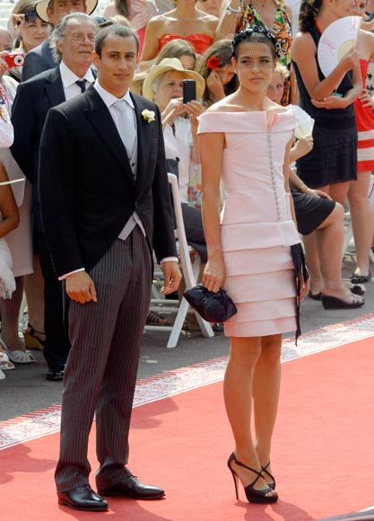 Carlota Casiraghi, hija de la Princesa Carolina y digna heredera de su estilo y elegancia, llevaba un dos piezas de escote barco y hechura encorsetada, con falda a capas en color rosa palo y con los complementos en negro. Sencillamente espectacular, ¿no creeis?.