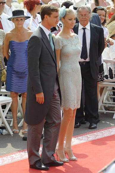 Beatrice Borromeo, novia de uno de los sobrinos del novio, lució un bonito y discreto vestido de encaje en color perla, con tocado en forma de flor a juego. Discreto, elegante y realza su esbelta figura.
