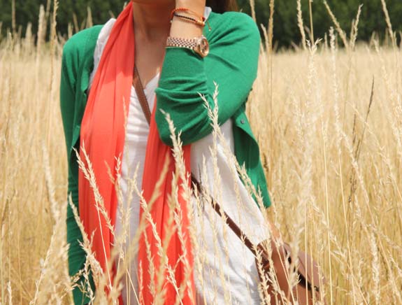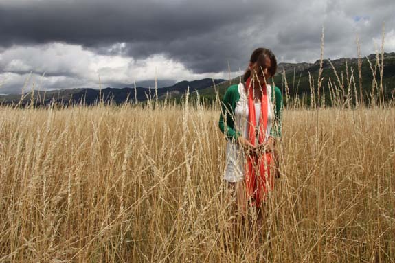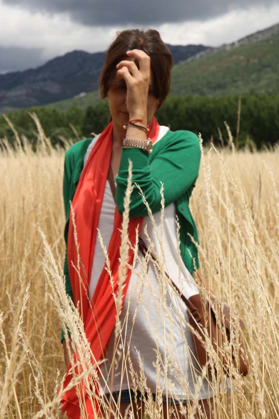 me encantan las imagenes campestres! 🙂 y el color de ese pañuelo es genial!