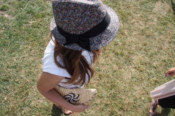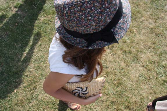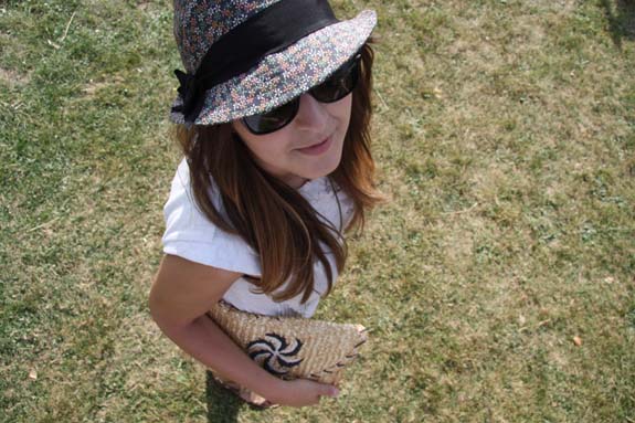 Sombrero Claire’s, colgante y bolso blanco, Romanas Zara, Gafas Rayban,