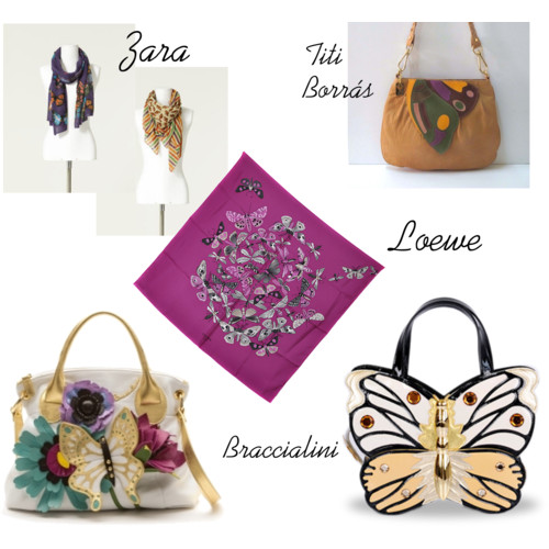 Pero parece que más que en la ropa, este Otoño vamos a ver mariposas en los complementos: bolsos y pañuelos serán los protagonistas.