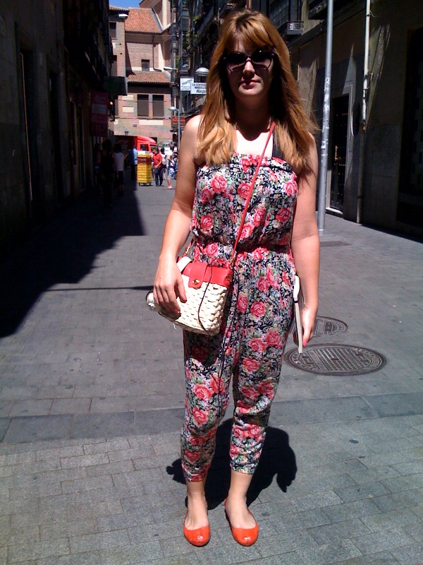 Y para terminar nuestro día de turismo, qué mejor que un outfit cómodo para una tarde de shopping por las tiendas de Chueca. Esta recién licenciada madrileña lo tiene claro: comodidad 100% con su mono de flores, según nos dijo, comprado en un mercadillo de Londres hace unos años, y sus bailarinas rojas.