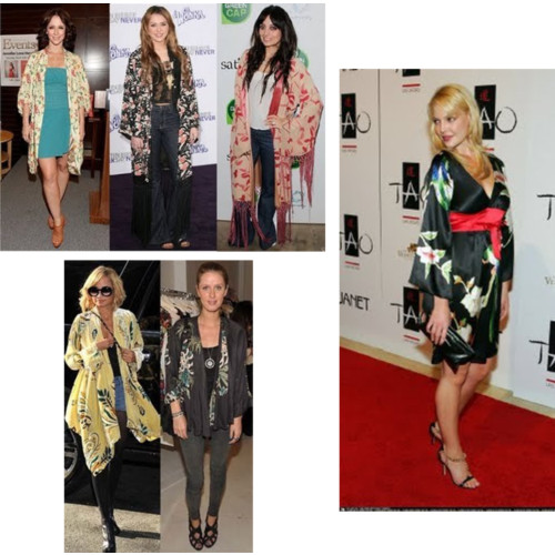 Hemos podido ver a celebrities en las alfombras rojas luciendo sus kimonos y prendas inspiradas en ellos: chaquetas, vestidos…