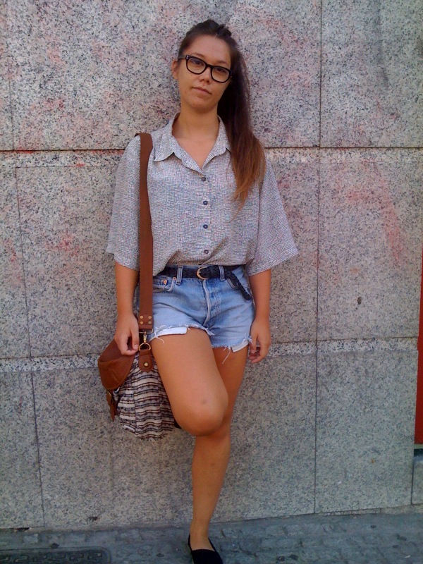 Todo lo contrario que esta joven madrileña, quien prefiere dar un toque nerd a su estilismo a base de shorts vaqueros y camisa oversize añadiendo unas gafas de pasta negras. Un look fresco y divertido fácil de copiar, verdad? Además, seguro que a más de una os suena su cara, ya que ha aparecido en más de una ocasión en varios blogs de Street Style.