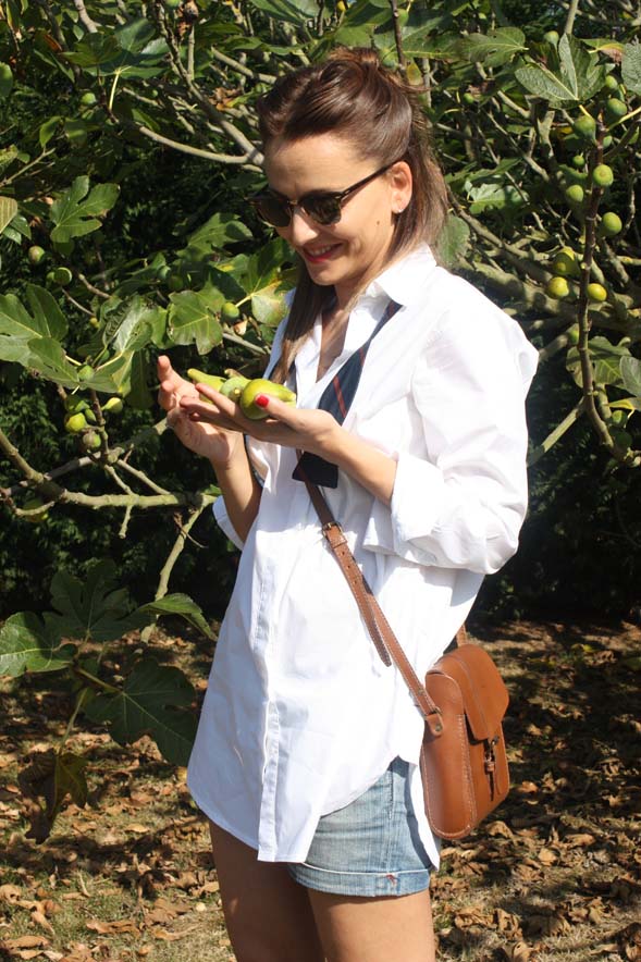 Esta semana habíamos de camisas así que hoy os traigo un ejemplo práctico de las múltiples propuestas para utilizar la camisa estilo masculino. Por un lado, la idea era potenciar su masculinidad añadiendole una pajarita y por otra hacer contraste feminizándola con labios y uñas rojas y con un peinado emulando los años 40. Los higos fueron la gran sorpresa de la sesión de fotos, que ricos!!