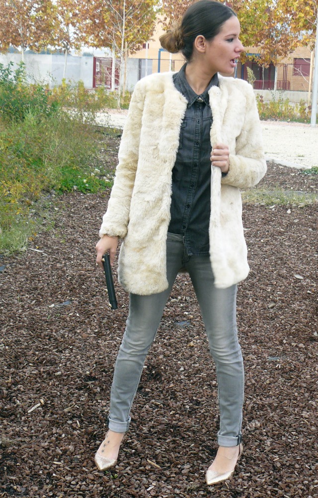 Para que veáis que además de baratos sientan estupendamente hemos seleccionado esta imagen de Nuria luciendo el abriguito de pelo. Ni siquiera es de la talla 14 cuenta en su blog que es la talla 11-12. Así que calculamos que los modelos que hemos cazado bien pueden servir hasta una 38.