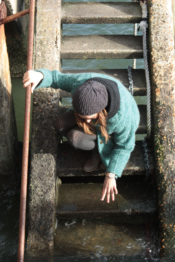 Abrigo y chaleco Zara, Shorts, gorro y leotardos H&M, Camiseta Pull and Bear, Reloj Massimo Dutti, Botas Ulanka.
