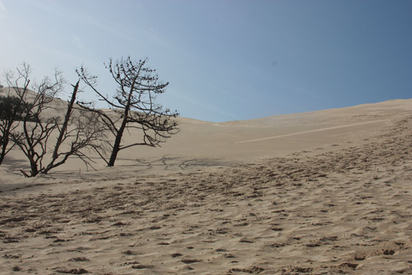 No se si las imágenes reflejan la imponencia de este paraje natural, un paisaje espectacular. La sensación al subir esa inmensa montaña de arena, es la de caminar por la nieve. Da un poco de cosilla subir, cuando estas a la mitad sientes que al menor traspié vas a caer rodando.