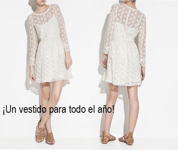 El segundo vestido que hemos elegido es el típico vestido blanco de los que os contamos que podremos utilizar todo el año, nos encanta con botines camperos, con sandalia, con cuñas…