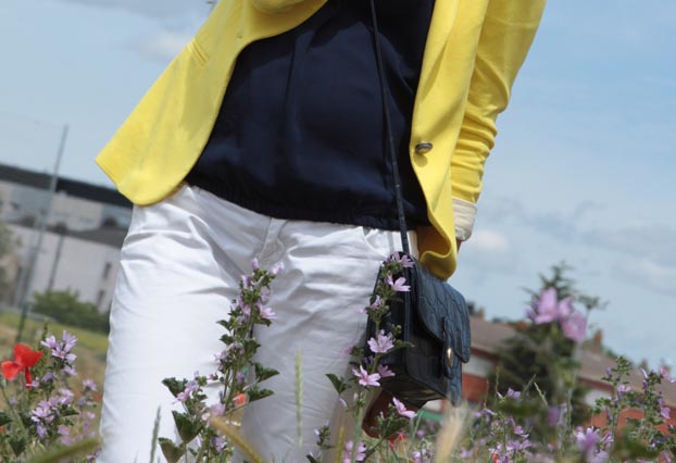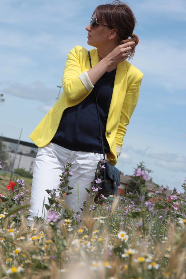En cuanto al look la blazer amarilla como protagonista combinada en este caso con azul marino y blanco. Como véis cada foto que os enseño se nota mas la barriguilla -hoy por fin sabré si espero niño o niña… ¡que nervios!-