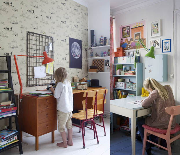 me encantan todas las habitaciones…. ojala tuviera sitio para hacerle un ricon de pintura a mi nena como el de la ultima foto…