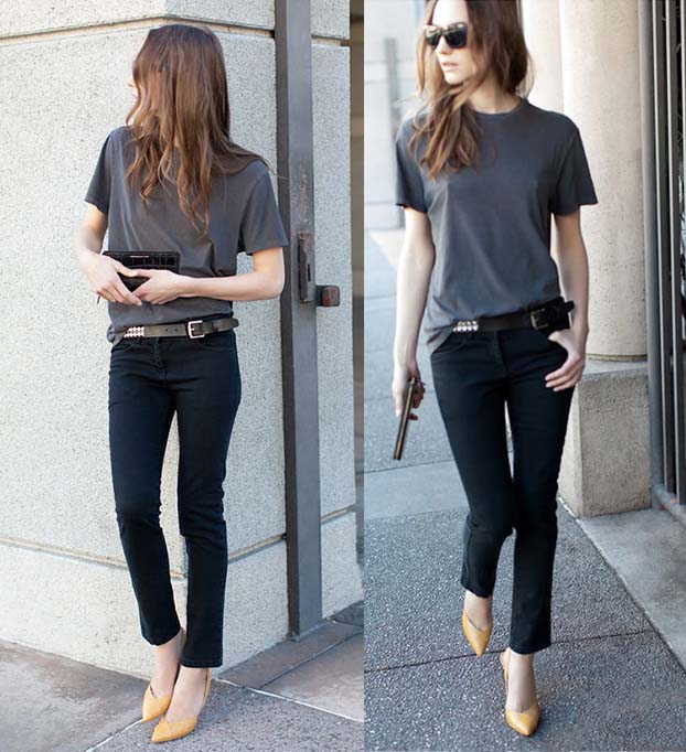 No son looks para nada sencillos. Lo primero de todo es que la chica es alta y delgada y con un vaquero negro y camiseta se ve genial, pero no le pasa lo mismo al resto de los mortales. Además lleva una ropa buena, con estilo, estos looks no se consiguen con ropa low cost.