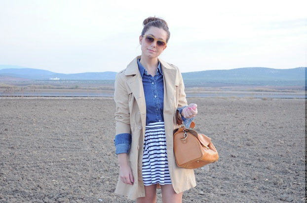 Si a los looks que combinan trench y camisetas navy, me encantan!
