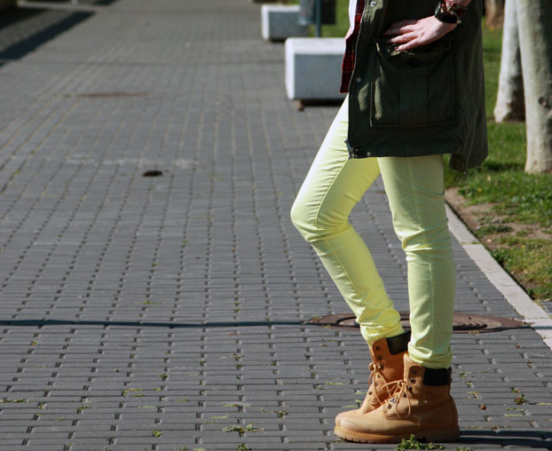No os descubro nada nuevo si os digo que esta época del año es perfecta para jugar con las capas. Debe ser la única forma de poder pasar el día entero fuera de casa sin terminar pillando un resfriado. Para mi lo que le da el punto primaveral a este look son los pantalones amarillos que por fin he podido estrenar ¿Qué os parece?