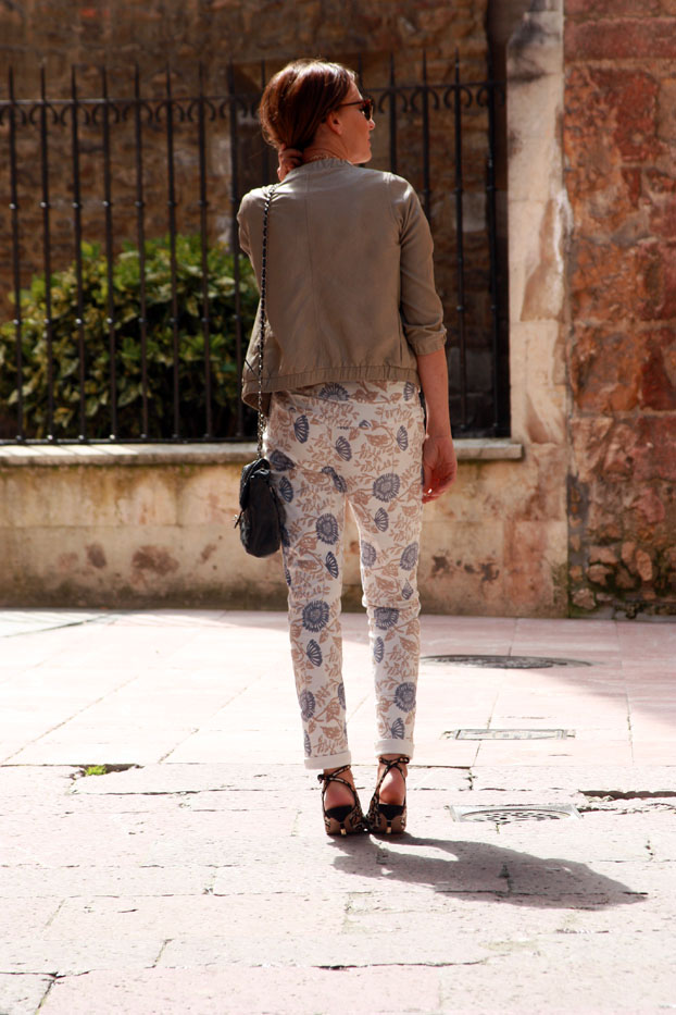 Como novedades del look de hoy el pantalón y el maxicollar de bolas. De los zapatos ya os he hablado la semana pasada en el post «cuatro tipo de zapatos para cualquier look» fueron un regalo de cumpleaños y me han venido de maravilla porque además de que me encantan, combinan prácticamente con todo, hoy por ejemplo aprovecho los tonos tostados del pantalón para combinar flores y animal print.