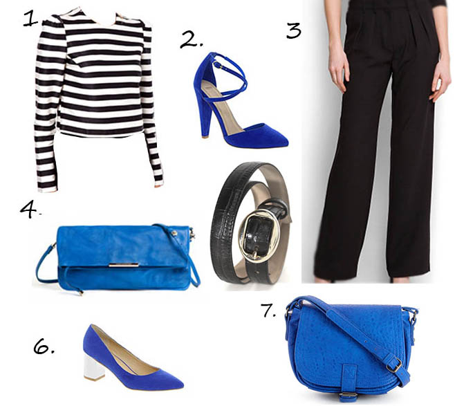 En esta ocasión, os mostramos más de una opción de bolso y zapatos para que elijáis la que más os guste. Los pantalones palazzo vuelven otra temporada con aún mas fuerza, además en esta propuesta podéis aprovechar una camiseta marinera y complementos en cualquier color para romper la monotía. En este caso el azul klein queda genial pero un coral o un verde también combinaría a la perfección. Además también podríamos huir del juego en zapato y bolso y utilizar unos zapatos de otro color.