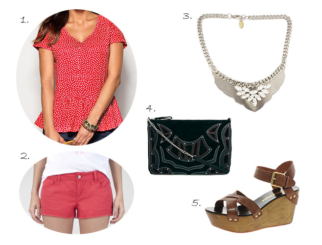 Un look para los últimos días antes de volver al trabajo o para las tardes de terracitas que aún nos quedan. Como veis muy sencillo apostando por unos shorts rojos y dando más importancia a los complementos; cuñas de madera, bandolera y gargantilla. Todas las prendas están rebajadas, así que si necesitáis alguna no perdáis la oportunidad de conseguirlas a un buen precio.