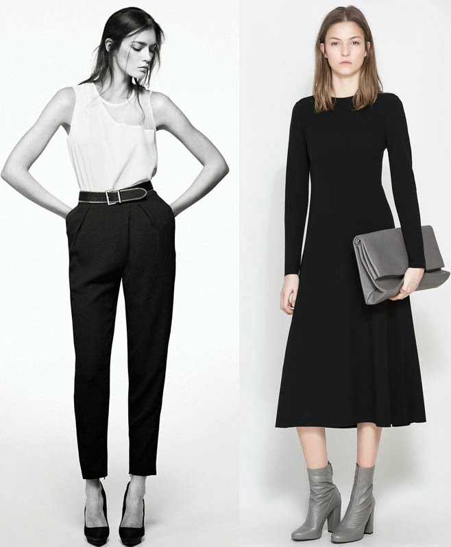 Que bonito el vestido con cuello de bebe de Zara y la camisa blanca con lazo negro de Mango.