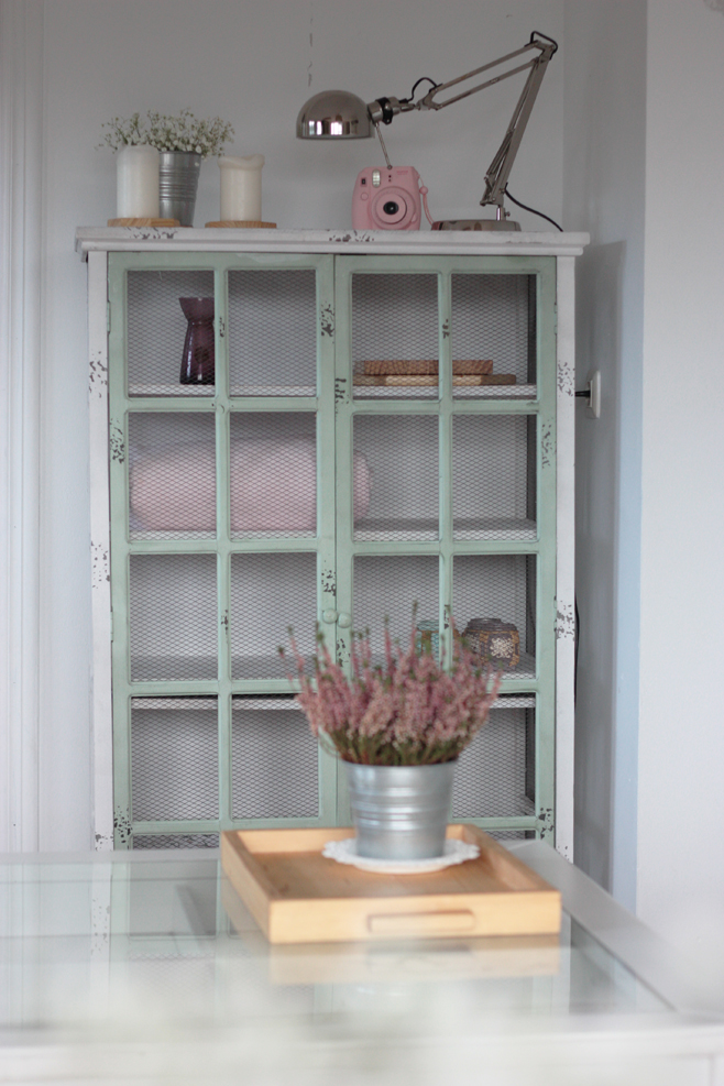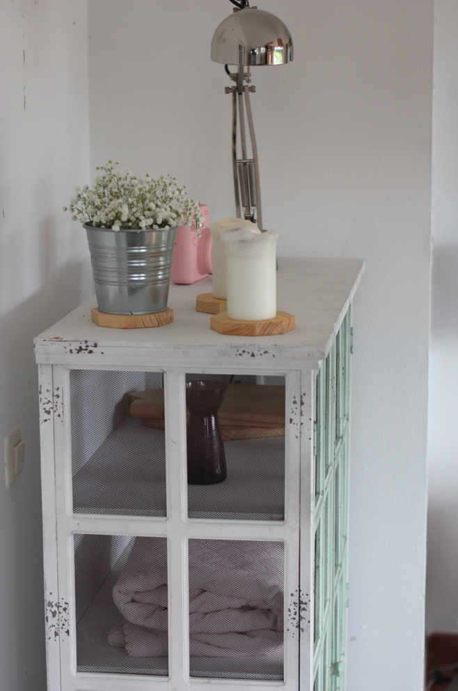 Como os contaba en hace varias semanas estoy tratando de seguir con las reformas de mi casa que quedaron pendientes el año pasado. Seguramente pronto podré enseñaros mas cosas, pero hoy me gustaría compartir mi nuevo mueble de la firma Banak. Debo decir que me sorprendió descubrirlo entre su catálogo porque no era el tipo de mueble que asociaba con esta marca. Me gustó mucho su aspecto envejecido, su mezcla de colores verde y blanco y las puertas de rejilla. De momento a penas lo hemos llenado mas allá de algunas tablas de madera, una manta y poco mas; lo que tengo claro es que quiero potenciar su tonalidad pastel y he empezado a hacerlo utilizando otros elementos de colores suaves como el rosa.