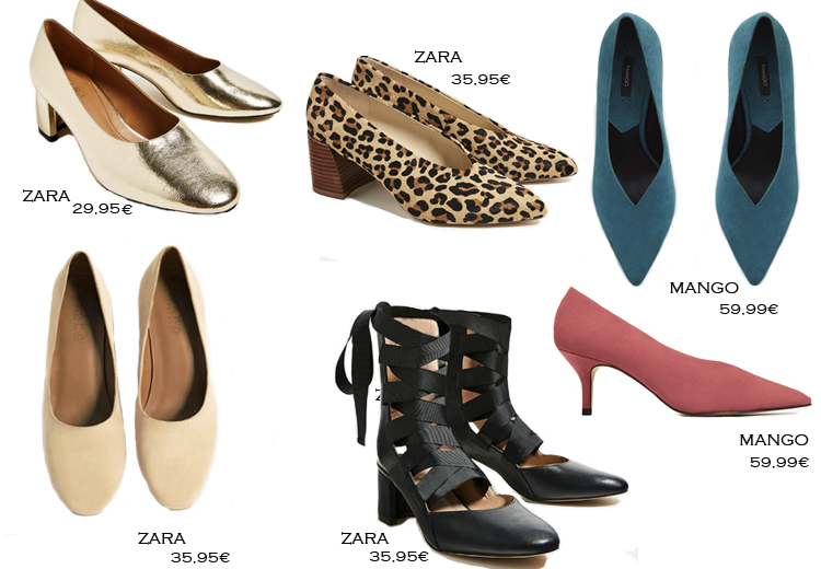 Este año además de los de tacón fino que siguen disponibles en todas las estanterías, a mi particularmente me llaman la atención los de tacón cuadrado y de estilo mas cerrado, una versión estilizada de los granny shoes, ya sabes los zapatos de abuela.