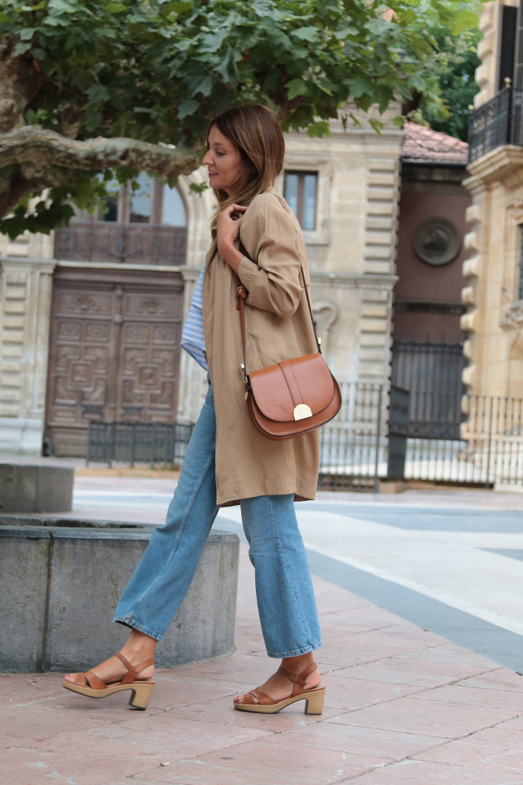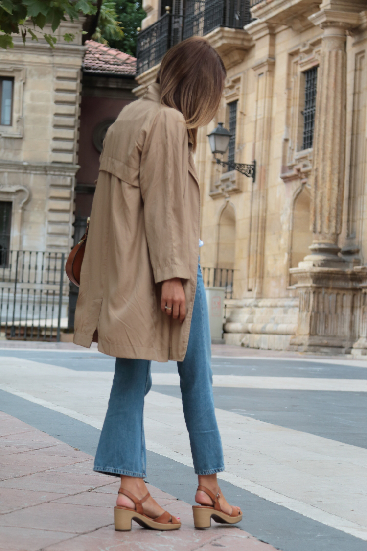 Pantalón y bolso Zara, camisa y gabardina Shein, sandalias Wonders