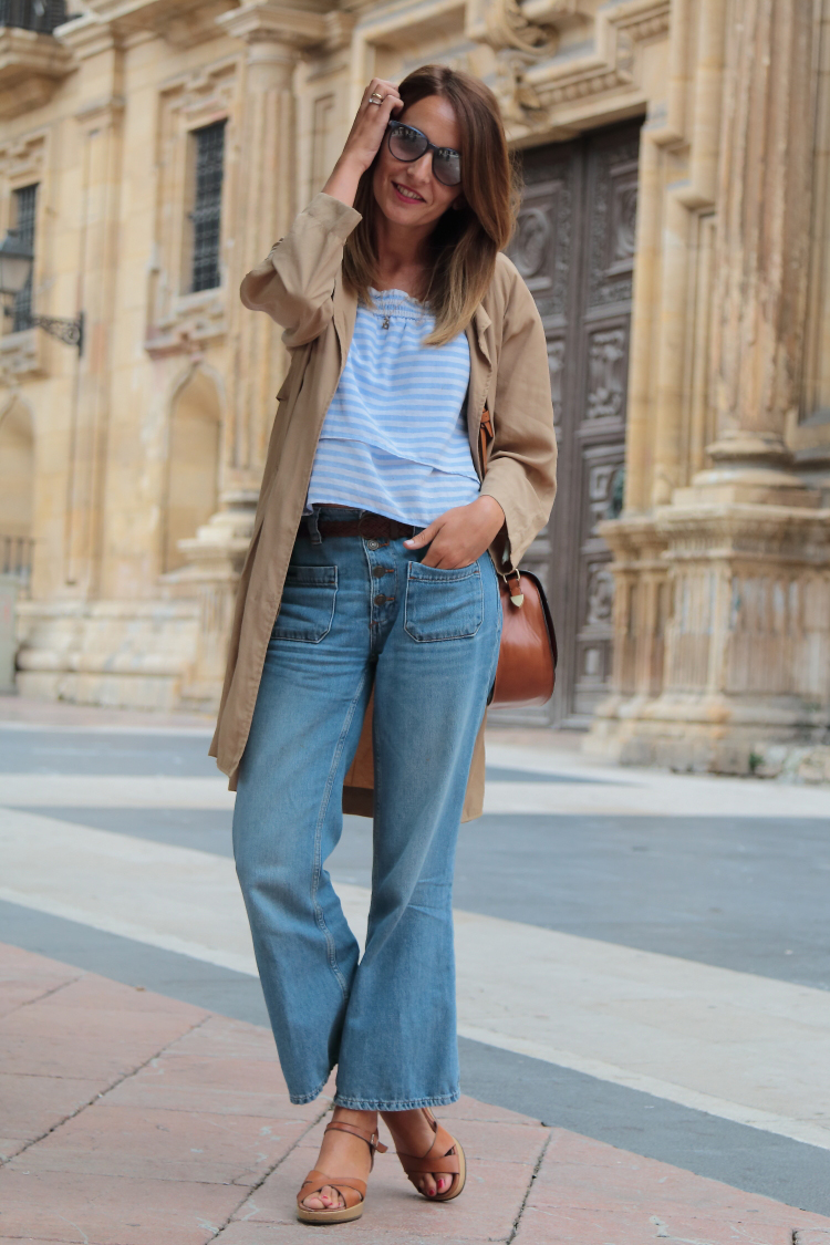 No hay ninguna novedad en el estilismo de hoy y sin embargo es de mis favoritos. La gabardina te la he enseñado en montones de looks al igual que los culottes denim que localicé en las rebajas del verano pasado y desde entonces se han convertido en una de mis prendas favoritas.