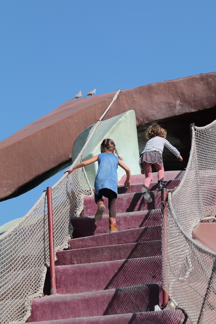 Por lo demás no tiene ningún problema, se nota que está pensando para niños de cualquier edad porque los toboganes no cogen excesiva velocidad y si os fijáis en las fotos sus formas son redondeadas sin las aristas ni picos peligrosos de otros parques. Un montón de escaleras y toboganes de los que disfrutar a cualquier edad, desde luego para mi también es ¡súper divertido!