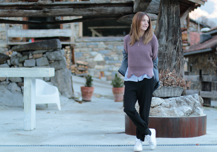 Jersey Rowme, pantalón Zara, Cazadora Rowme, bolso y zapatillas k-Swiss