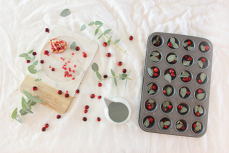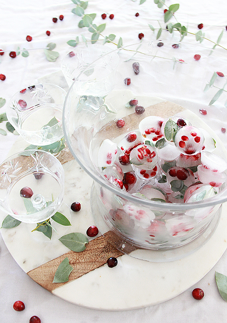 Mañana es Nochebuena momento de volver a amigos que viven lejos, a la familia, brindis y mas brindis que podemos hacer mas bonitos a base de hielo decorado. ¿Puede haber algo mas sencillo que meter agua con granos de granada en una cubitera o molde para magdalenas y ponerlo en el congelador?