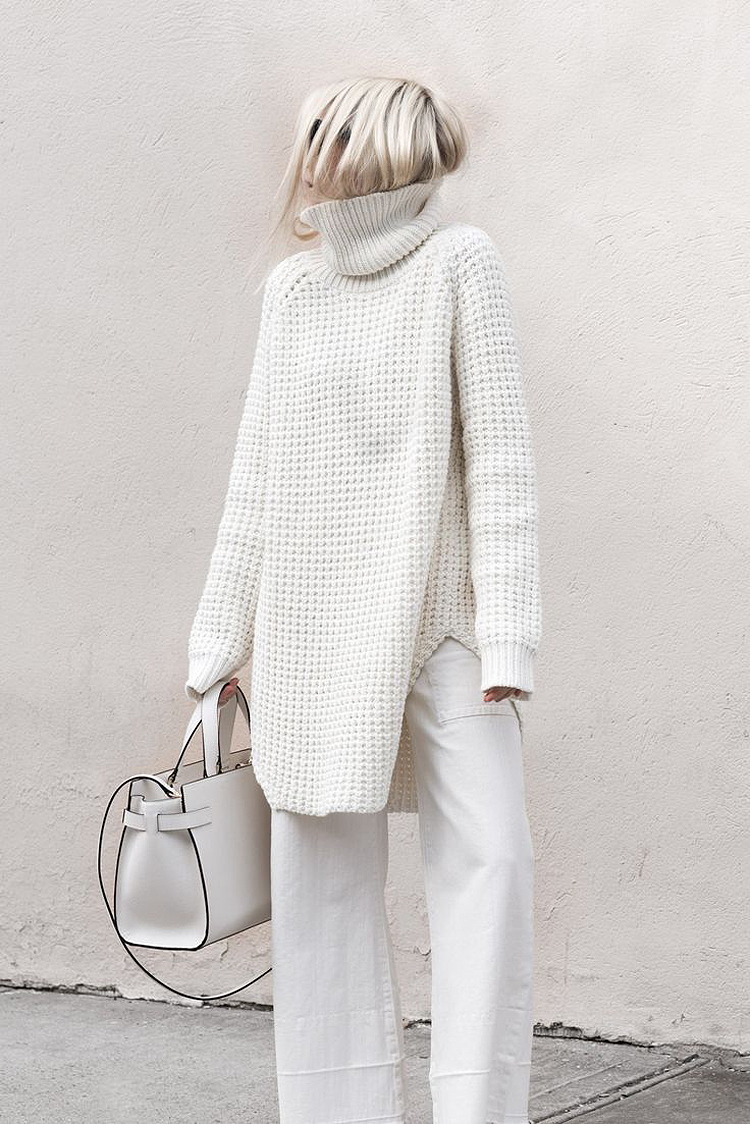Mis favoritos son los total looks blancos o las combinaciones con otros tonos empolvados: gris, camel… Tengo que reconocer que me fascinan tanto los jerséis como las chaquetas de punto grueso sin duda forman parte de mi lista para las rebajas, avisaré si encuentro alguna prenda que valga la pena. ¡Qué vaya bien el lunes!