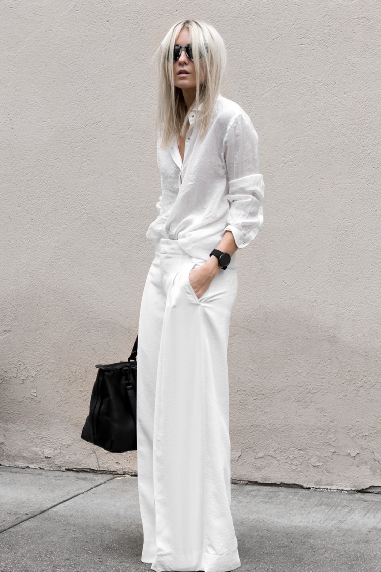 En cualquier caso he buscado un montón de looks de inspiración en los que el color blanco es el absoluto protagonista. Total looks blanco, combinado con crema, con camel, con gris o con negro… ¡Echa un vistazo!