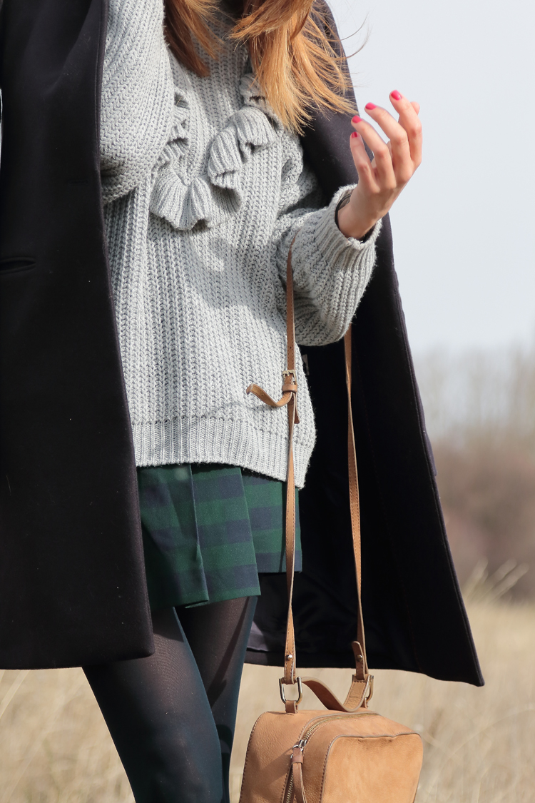 Falda, abrigo y bolso Zara, Jersey Berskha, Botas Polska