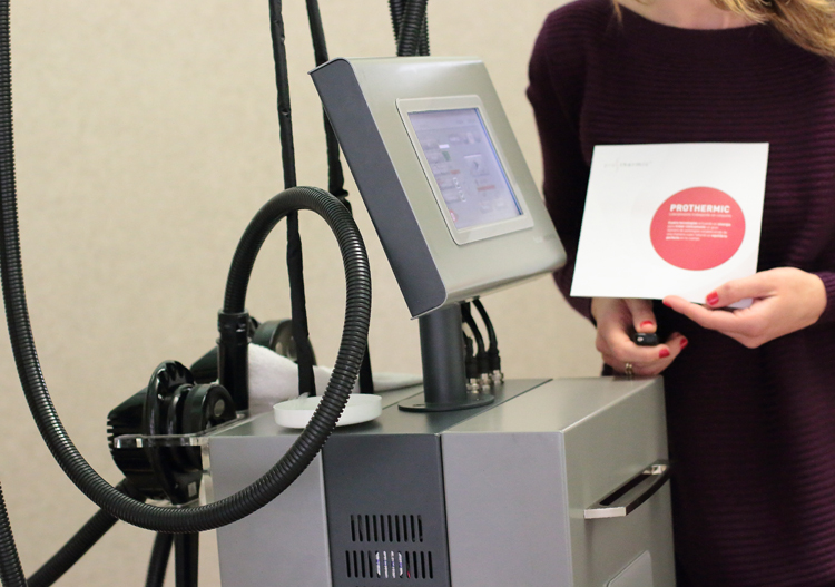Como ya te comenté Prothermic trabaja durante la misma sesión con Radiofrecuencia, vacumterapia, diodo emisor de luz y crioterapia dando como resultado un tratamiento espectacular que se adapta a las necesidades personales de cada una de nosotras y que tiene la capacidad de tratar todo el cuerpo al mismo tiempo y no limitarse a una zona concreta. Al trabajar en conjunto estas cuatro tecnologías consigue excelentes resultados reduciendo el tiempo que necesitamos para conseguirlos. El tratamiento se aplica a través de dos manípulos que gracias a la forma interna que ves en la siguiente foto se pueden utilizar en zonas donde aplicar un tratamiento resulta más complicado con otros aparatos como por ejemplo sobre las rodilla.