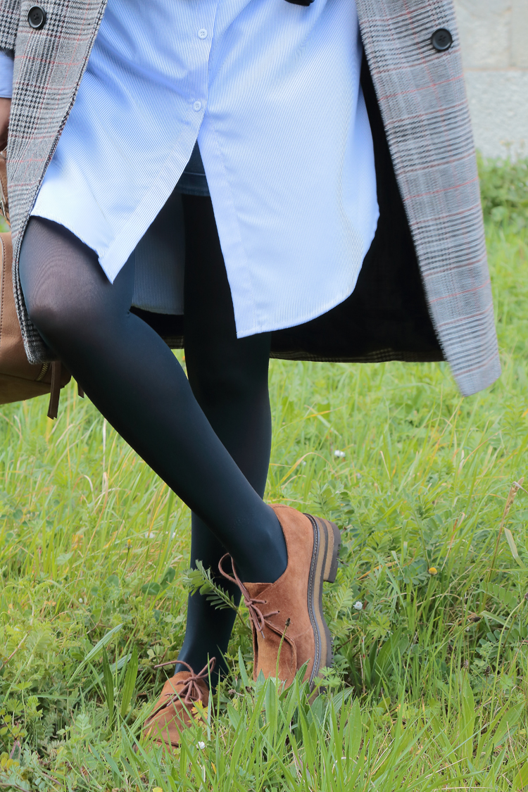 En esta ocasión lo he combinado con los mocasines Wonders que ya te he enseñado en varios looks, además de ser comodísimos desde mi punto de vista le aportan un toque colegial al outfit que le encaja fenomenal. Aunque en otras ocasiones encima de este vestido he llevado el abrigo azul marino, esta vez decidí utilizar las combinación rayas mas cuadros, un mix and match en toda regla.