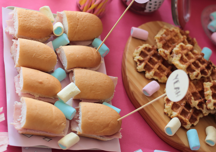 Este año como novedad en la merienda les hice gofres y unos poops de chocolate adornados con bolitas de tonos pastel y para no complicarme en lugar de en palo los presenté con papel de magdalenas también en tonos pastel. Pronto compartiré la receta porque estaban buenísimos. Para la tarta utilicé la receta de la tarta 200 pero esta vez la rellené con un puré de fresas y para hacer el cuerno del unicornio utilicé un barquillo de helado y decoré con las mismas bolitas que para los poops. Los ojos los hice con un palillo que iba mojando en chocolate.