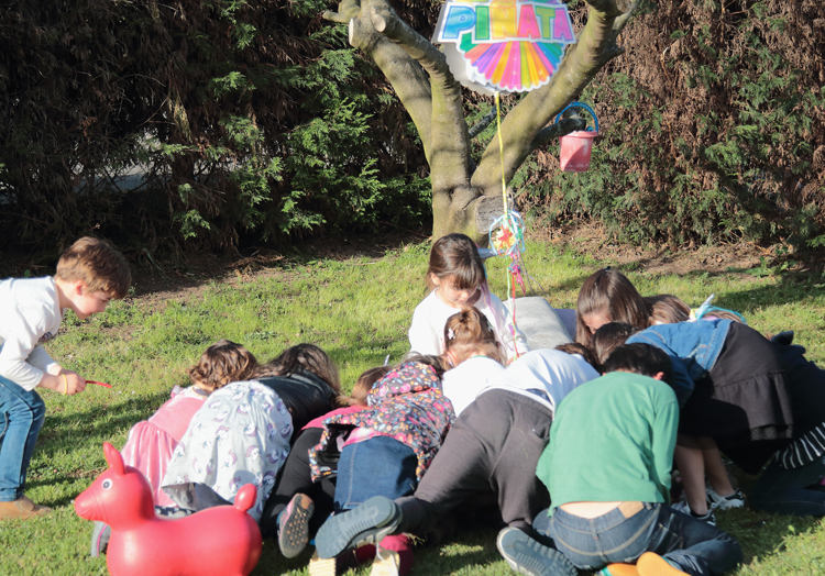 La gran novedad de este año fue la piñata, nunca habíamos tenido piñata y este año Ariadna nos pidió tener una. Para mi la mejor forma de disfrutar de una piñata es que la cumpleañera tenga los ojos vendados darle unas vueltas para despistarla y que sean los invitados la que la guíen para que le de con el bate y caigan las chuches y luego todo el mundo a guardar las chuches en su bolsita ¡fue realmente divertido!
