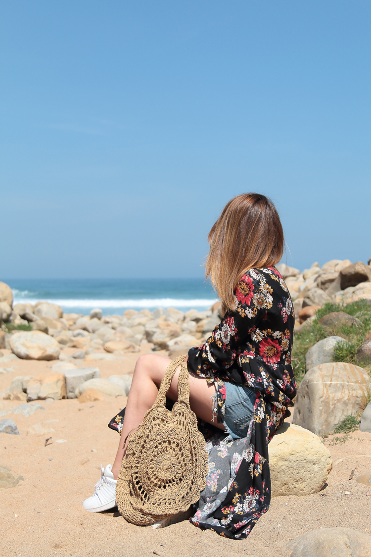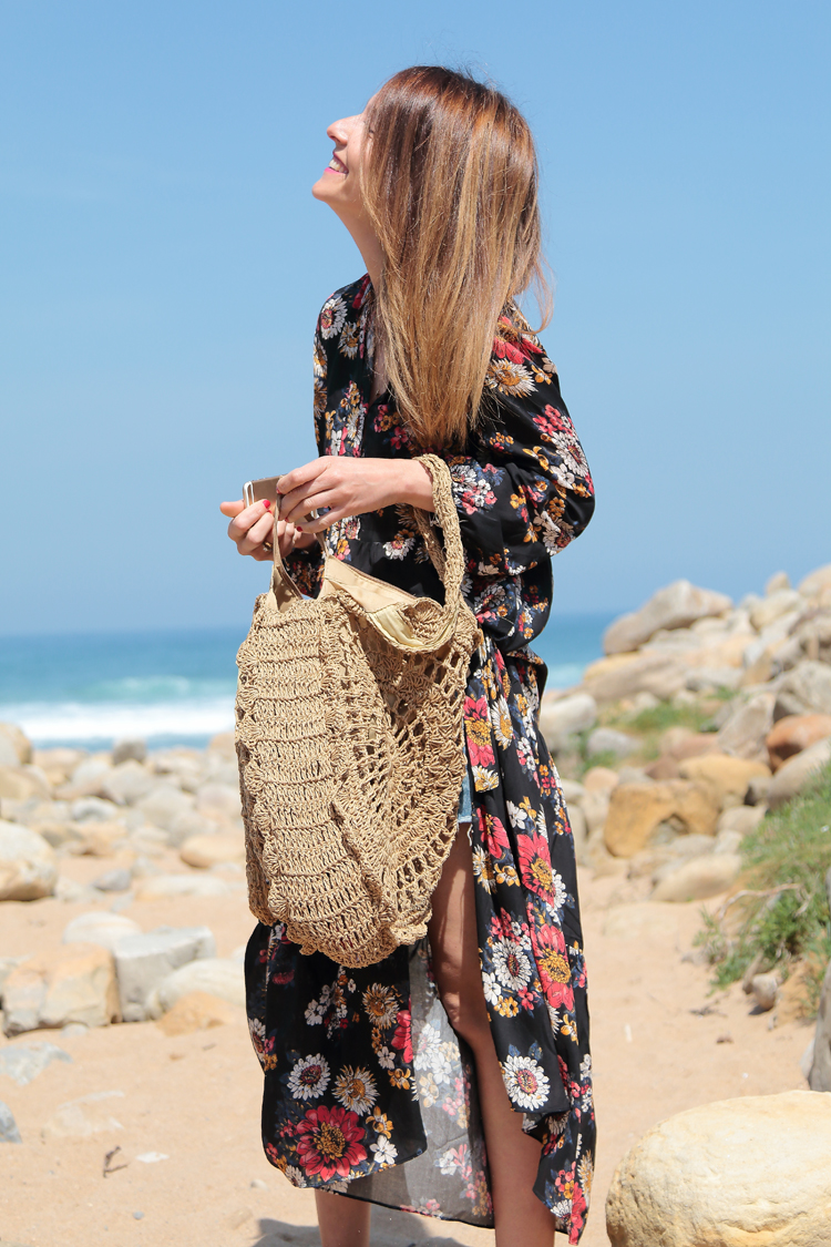 Te cuento como surgió este look, pensábamos pasar un buen rato en la playa, me apetecía llevar unos shorts por eso de ir cogiendo algo de tono en las piernas, quería combinalos con un blusón largo por eso de evitar el frío de la tarde y recordé que este vestido bien colocado podría tener el aspecto que buscaba, así sin mas durante las horas de sol sujeté una parte del vestido con el short y al final de la tarde lo llevaba como vestido normal.