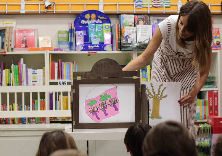 El pasado viernes hicimos un cuentacuentos de Clara y Pepo con Kamishibai en la librería La Buena Letra dirigido a niños y niñas de 2 a 7 años. Kamishibai, en japonés, quiere decir “teatro de papel”. Elegí este formato para los cuentacuentos de Clara y Pepo porque el kamishibai engloba un universo repleto de historias sencillas pero ricas en sentimientos y enseñanzas y justamente eso es lo que yo quiero transmitir a los niños con Clara y Pepo.