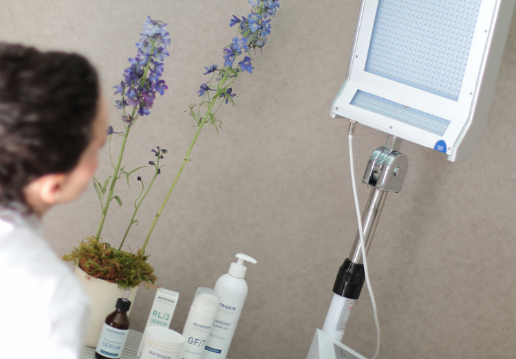 Los tratamientos RF/7 combinan trabajo manual con terapia led, potenciando así sus resultados. Se utiliza luz roja led para estimular los fibroblastos, que a su vez fabrican más cantidad de fibras de colágeno y de ácido hialurónico. Esto se traduce en una piel más elástica, que recobra tono porque se contrae. Hay tres tipos de tratamientos: