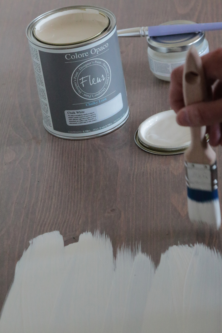 La verdad es que fue muchísimo más sencillo de lo que pensaba, primero limpié la cómoda y una vez seca comencé a pintar. Utilicé la brocha que ves en las fotos y un pincel fino para llegar a los bordes y esquinas. Apliqué tres manos de pintura sin diluir directamente del bote y entre capa y capa dejé secar una hora.